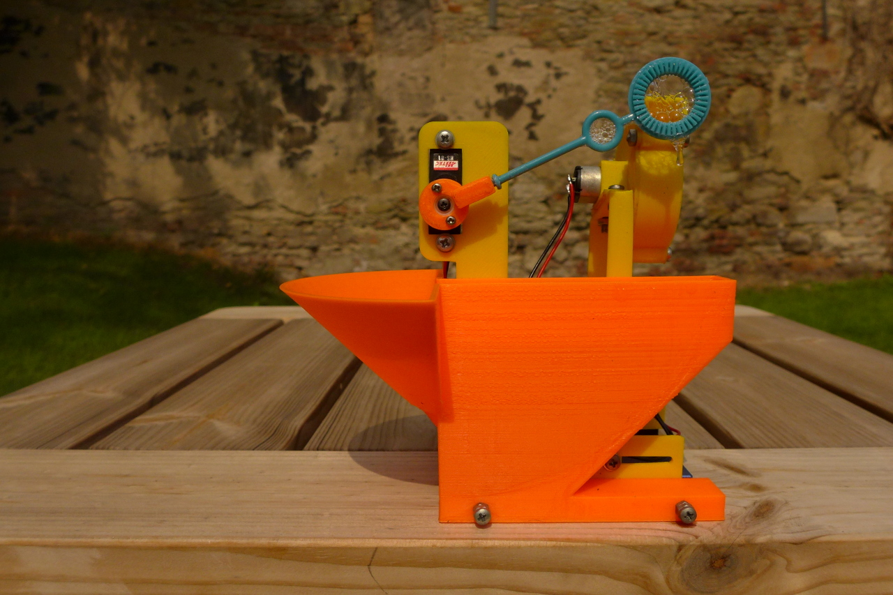 BubbleBot is a 3D printed bubble blowing robot I built for my kids.